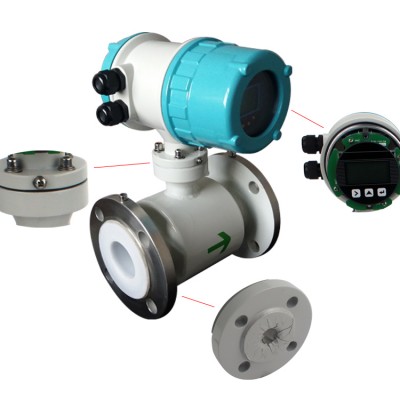 傳感器將感應電勢E作為流量信號,傳送到轉換器,經放大,變換濾波用一系列的數字處理后,用帶背光的點陣式液晶顯示瞬時流量和累積流量。轉換器有4~20mA輸出,報警輸出及頻率輸出,并設有RS-485等通訊接口,并支持HART和MODBUS協議。