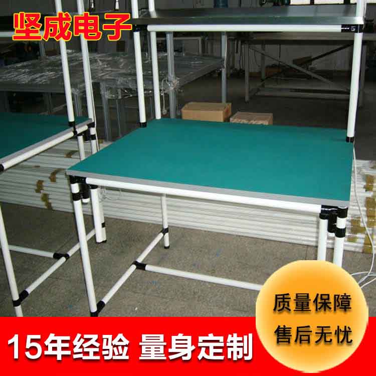 復(fù)合管工作臺主要構(gòu)件是直徑28mm的精益管,加裝各式功能連接件,并且依生產(chǎn)作業(yè)需要安裝應(yīng)用組件:臺面板,排插等組成的生產(chǎn)作業(yè)工作臺;