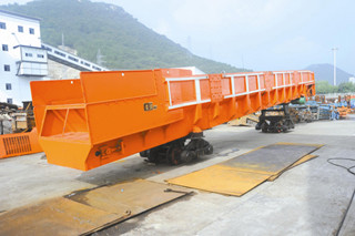 SD系列搭接型梭式礦車車箱內裝有刮板運輸機,SD系列搭接型梭式礦車可自動裝卸碴石,裝卸速度快,效率高。SD系列搭接型梭式礦車轉向架采用鋼板彈簧結構型式,減震性能好,運行平穩,不易掉道。
