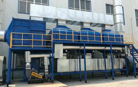 活性炭吸附脫附階段:經過前面的預處理后,廢氣通入后端的活性炭塔進行吸附處理,通過活性炭表面的孔隙吸附廢氣分子,吸附廢氣。當活性炭飽和后,把裝置切換到脫附模式,對活性炭進行脫附。脫附新鮮空氣首先經過新風入口的換熱器和電加熱室進行加熱,將空氣加熱,進入活性炭床,炭床受熱后,活性炭吸附的廢氣會揮發出來,此時廢氣變成高濃度小風量的廢氣。