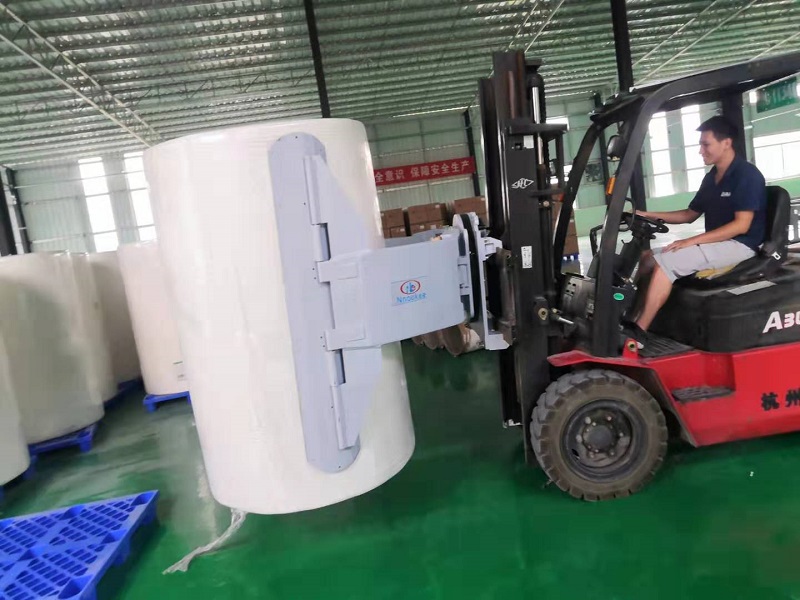 目前,諾克紙卷夾已在造紙行業、日用行業、文體行業等多個領域,為客戶提供整體物流解決方案,以叉車機械手取代傳統的的人工搬運方式,緩解眾多行業當前人力資源匱乏的大環境現狀,解決客戶在生產搬運效率和企業物流成本上等方面上的痛點。裝載于叉車前端的諾克紙卷夾,以其獨特的“夾持”方式,實現了紙卷的無托盤搬運,相比人力搬運、托盤搬運等傳統搬運模式,顯然更為高效、省時。