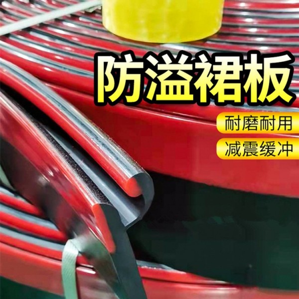 1. 防溢裙邊的主體部分為黑色,采用 橡膠和丁苯橡膠混煉而成,在保持挺括的基礎上增加彈性,使紅色的多防護密封條緊密的貼服在輸送帶上,甚至當多護系統達到使用即將磨損完后還能夠繼續履行防溢裙邊的防溢效果。